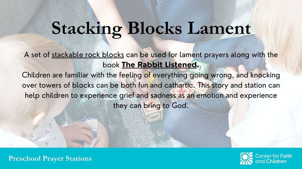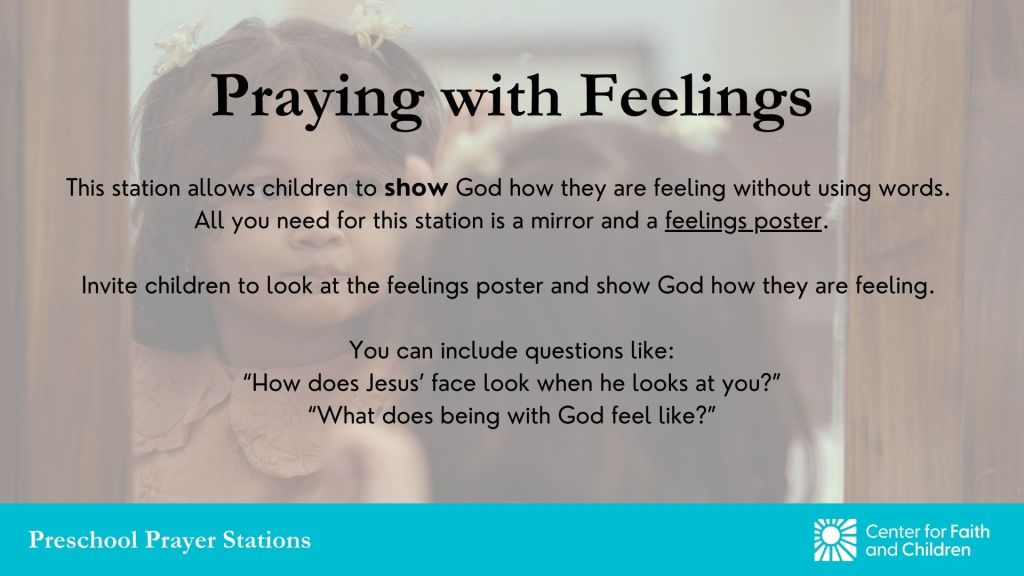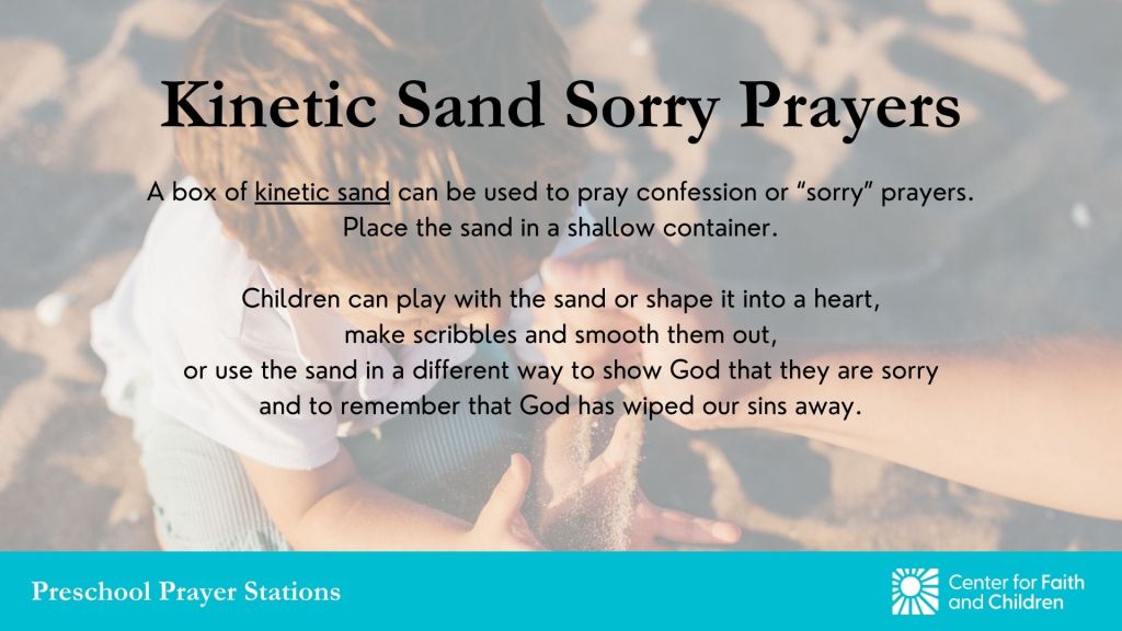 For many preschool children, words don’t come as naturally as big muscle movement, play, or exploration. Their primary language is play. God wants to connect with children as they are! Sensory prayer activities can help young children engage in prayer as the practice of being with God, even if they don’t have words. Below are a few examples of what playful prayer can look like with preschoolers. Scroll through our slideshow of ideas below, and download the PDF with links here.